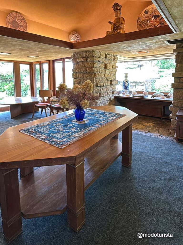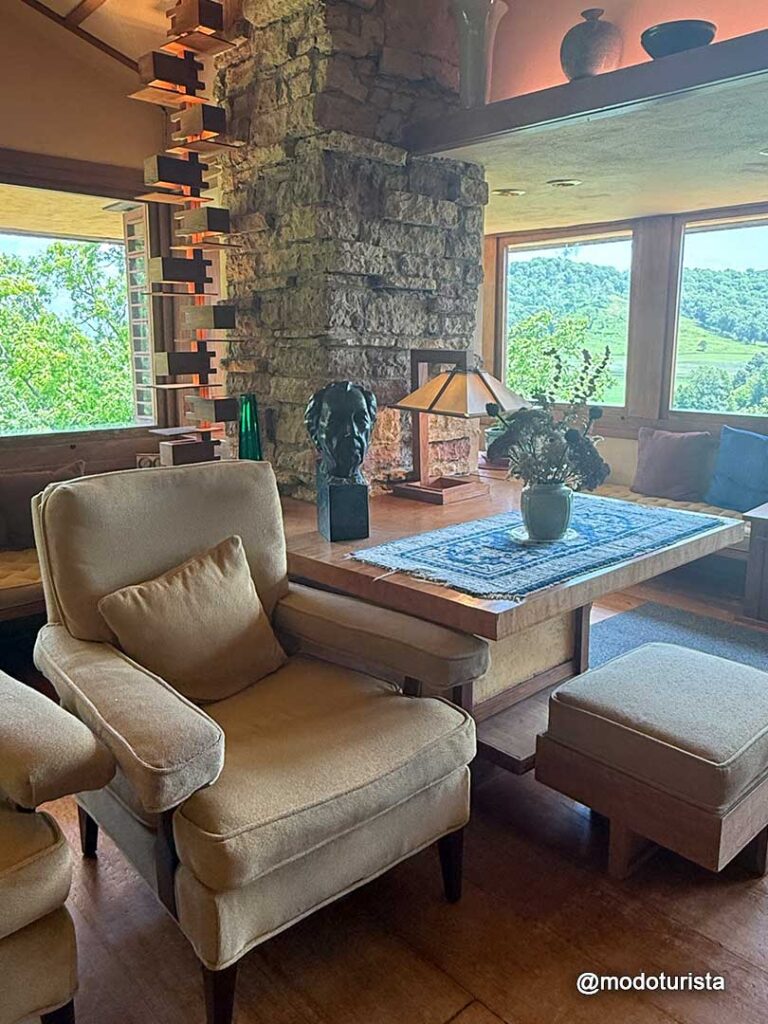 El recorrido por Taliesin es una experiencia única: permite conocer la filosofía de Wright, sus ideas sobre la arquitectura orgánica y la relación entre el diseño y la naturaleza. Los paisajes que rodean la casa, con colinas verdes y vistas abiertas, hacen que todo parezca una pintura viva.