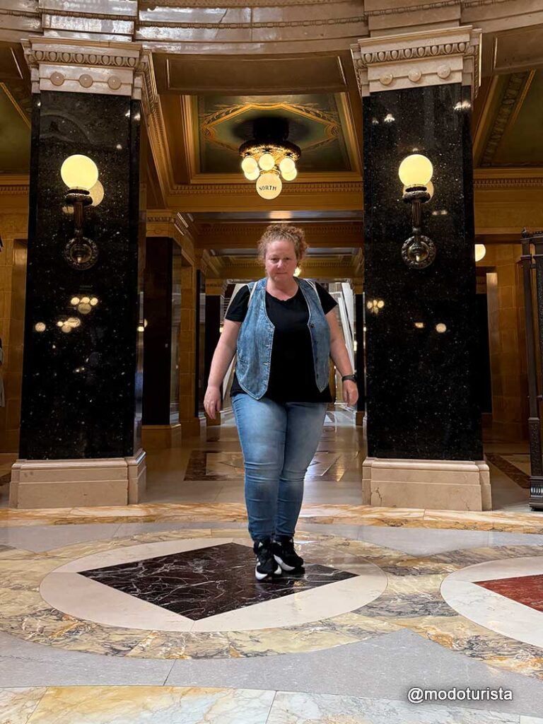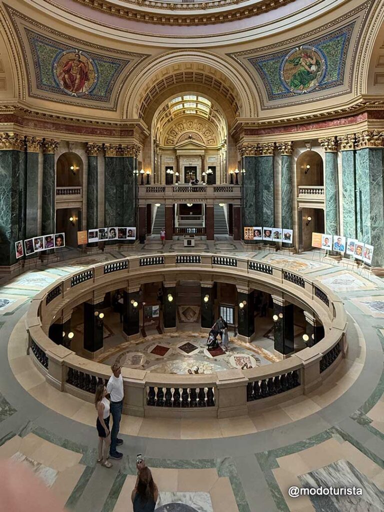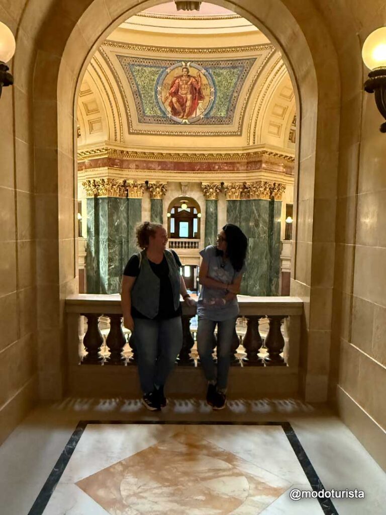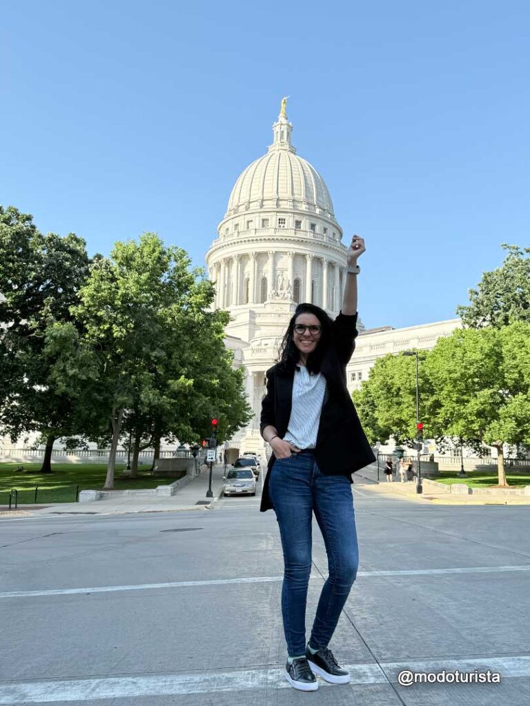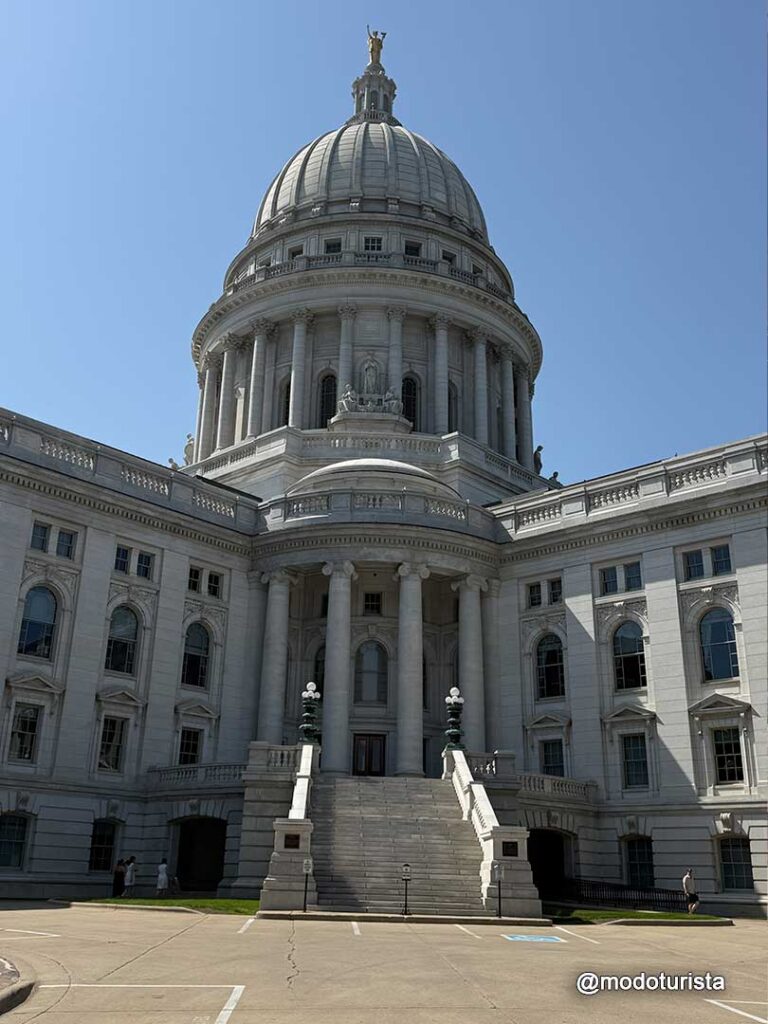 Ya en Madison, hicimos el tour del Wisconsin State Capitol, un imponente edificio con una de las cúpulas más grandes del país. Su arquitectura es impresionante, con mármoles de distintas partes del mundo, murales, esculturas y una vista panorámica desde el mirador superior que vale la pena disfrutar.