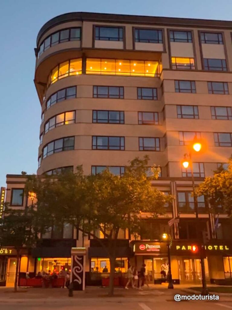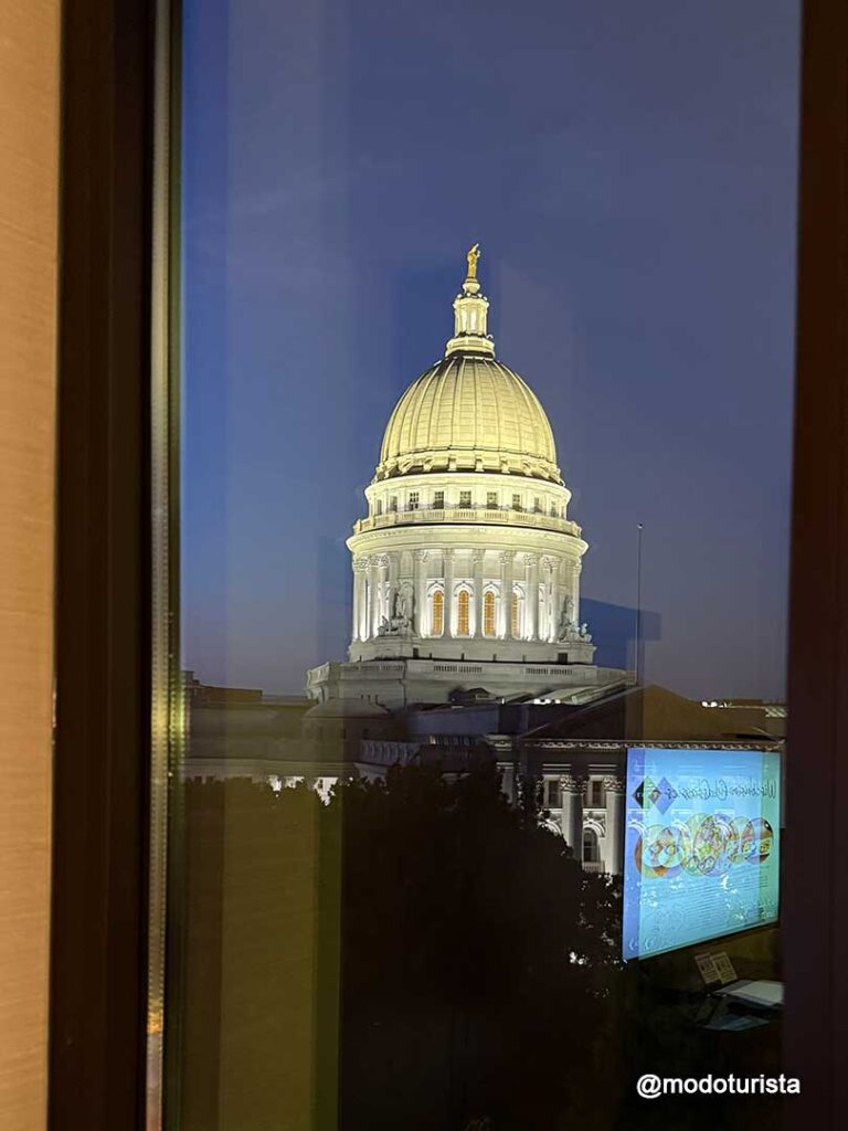 Durante nuestra estadía en Madison nos alojamos en el Best Western Premier Park Hotel, ubicado justo frente al imponente Capitolio del Estado de Wisconsin. La ubicación no podría ser mejor: desde nuestra suite tuvimos vistas increíbles al edificio del Capitolio, especialmente de noche, cuando se ilumina por completo.